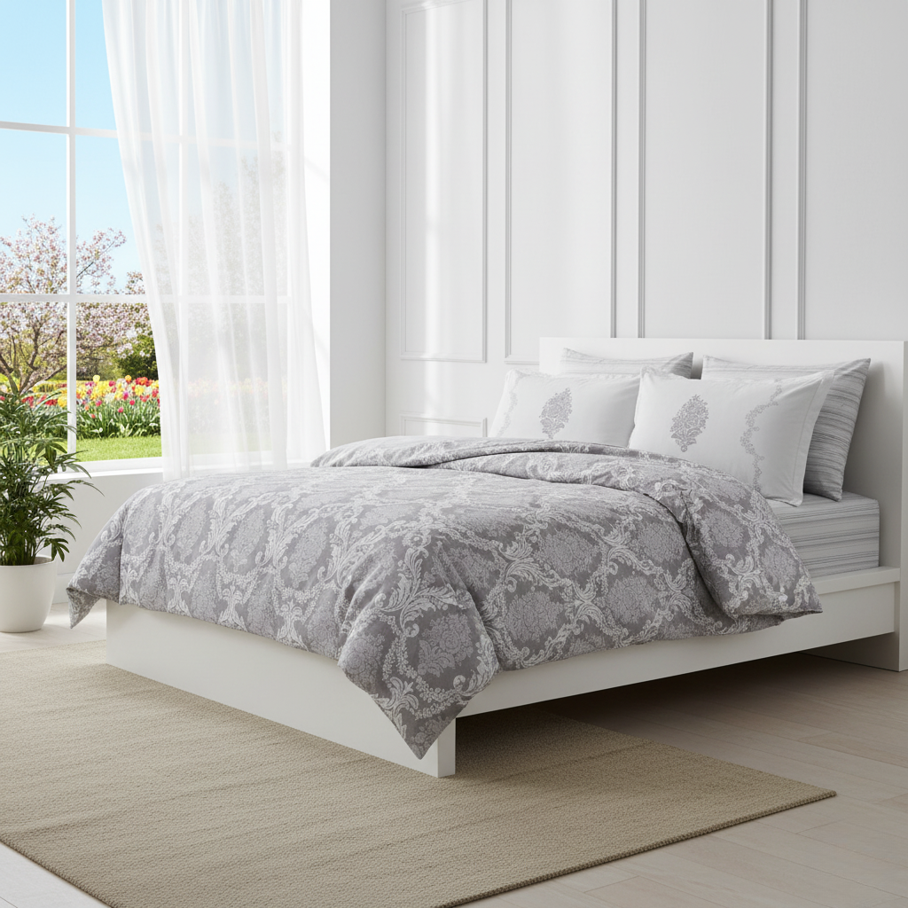 An ornate pattern with a distinctive print that will give any room luxury touch. Add a elegant look to your bedroom that provides you with comfort every time you go to bed .