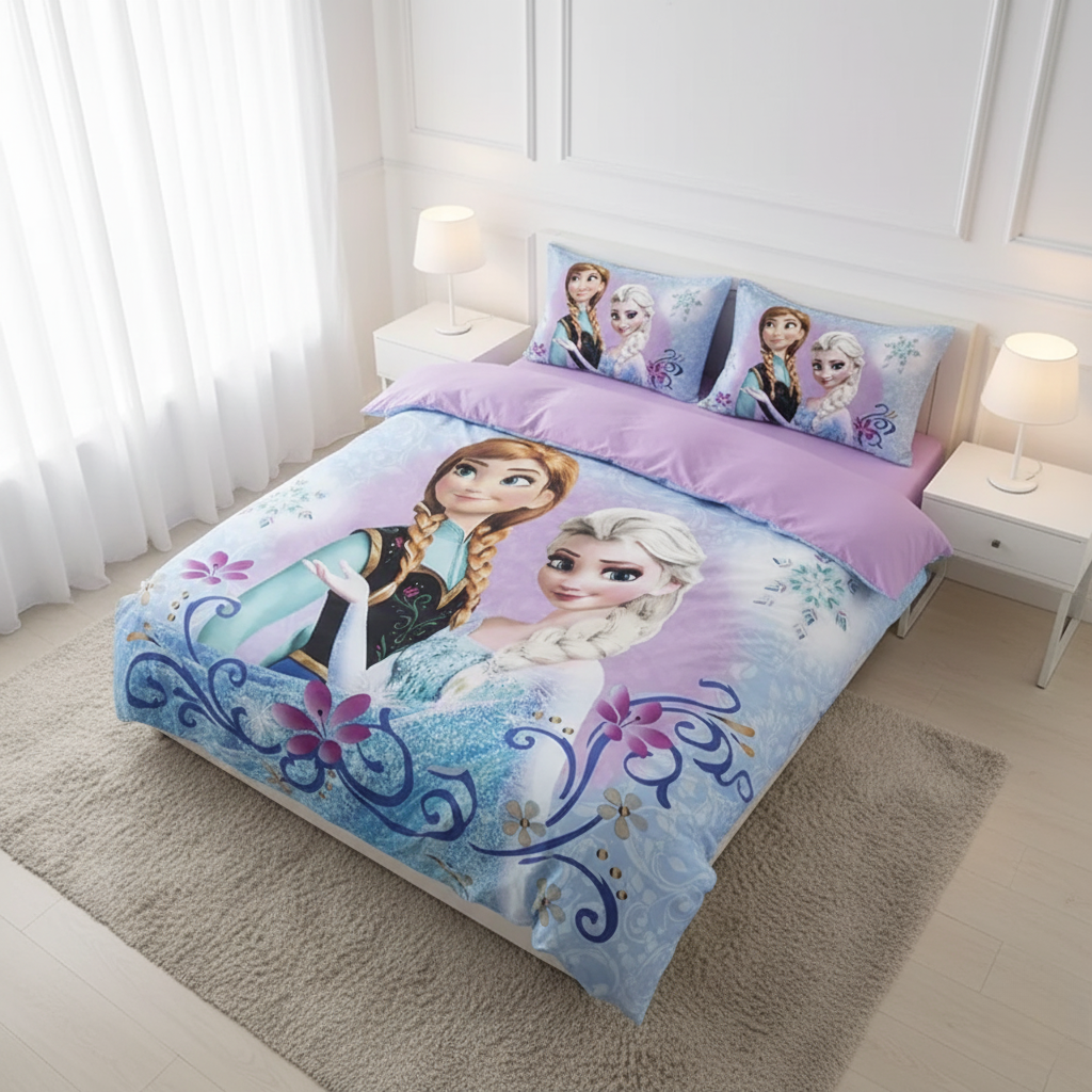 Transform your room into a winter wonderland with this cozy Frozen-themed quilt cover! Inspired by the magic of Elsa, Anna, and their enchanted world, it’s perfect for those who love a touch of frost without the chill.