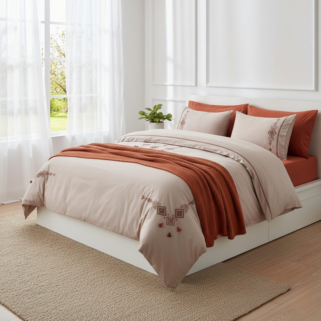 Our Tamel Beige Quilt Cover Set will surprise you with their softness and durability with the ideal material for those with sensitive skin.