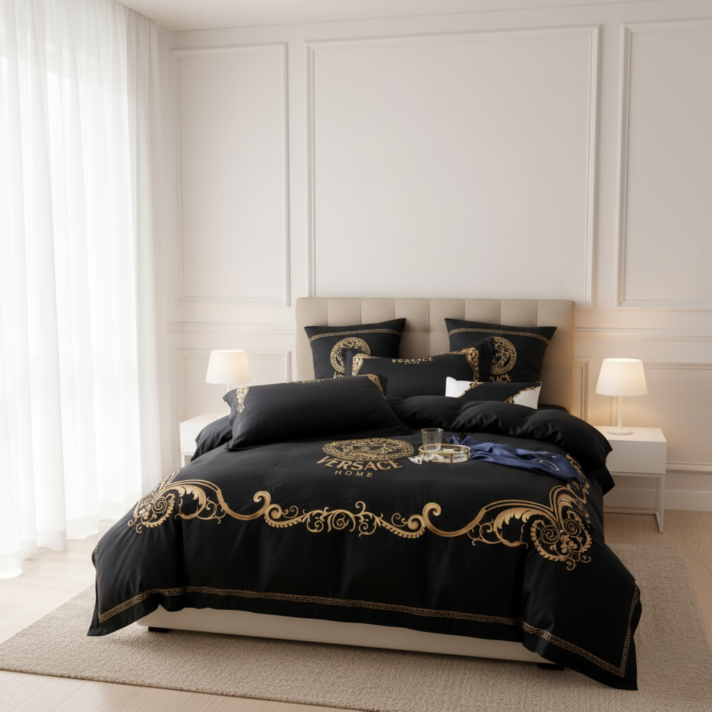 This stunning quilt cover not only is it striking but also elegant with its gold design giving it a luxurious look. It is made from 100% Egyptian cotton which makes it soft and comfortable to sleep in without taking away the sheen look of the design. This beauty is our top seller and will definitely be you're favourite.