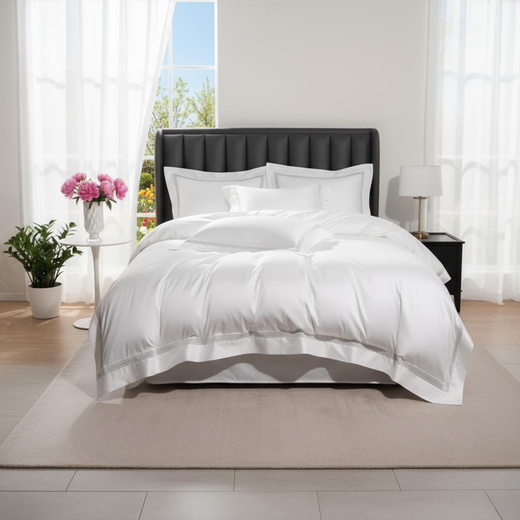 This stunning white quilt cover set is luxurious, classy it is everything in the one design. It will transform your bedroom instantly.