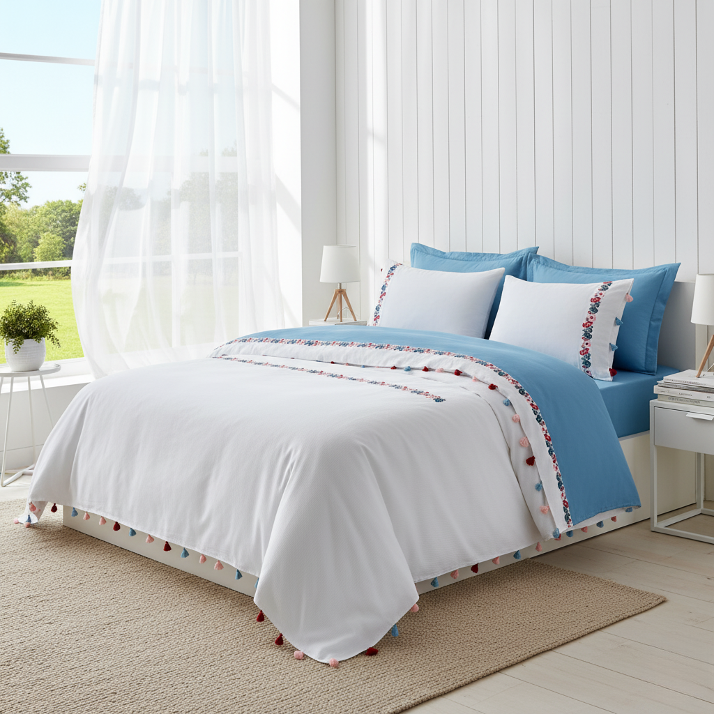 Our Valentina Blue Quilt Cover Set will surprise you with their softness and durability. Made from ultra-finely woven 100% Cotton material, they are the absolute Queen of Night Comfort and ideal for those with sensitive skin.